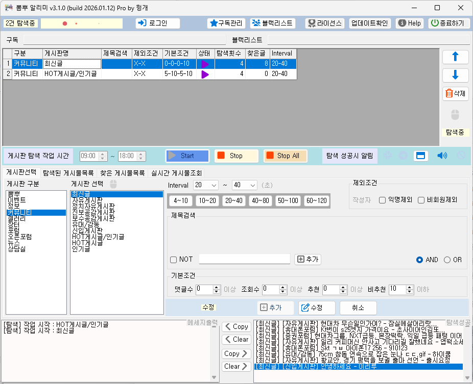 1. 프로그램을 시작하고, 탐색을 원하는 게시판을 선택하고,