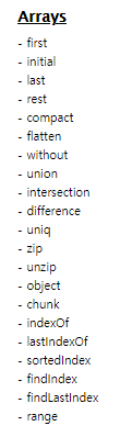 Collections / Arrays / Functions / Objects / Utility 로 구분되어 있고,