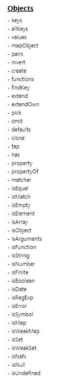 keys, findKy, clone, has, ... 그 외에는 많은 is 함수들이 있다.