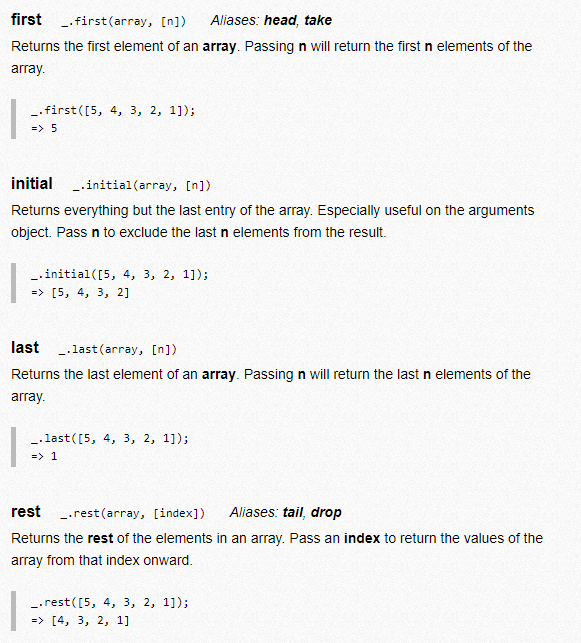 Array 함수중에 first / initial / last / rest 는 지정된 갯수만큼 배열을 가져오는 함수이다.