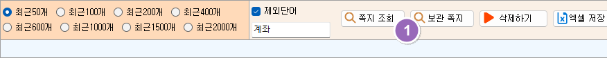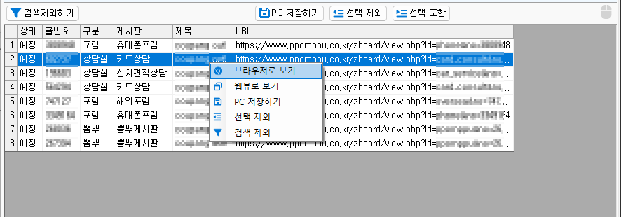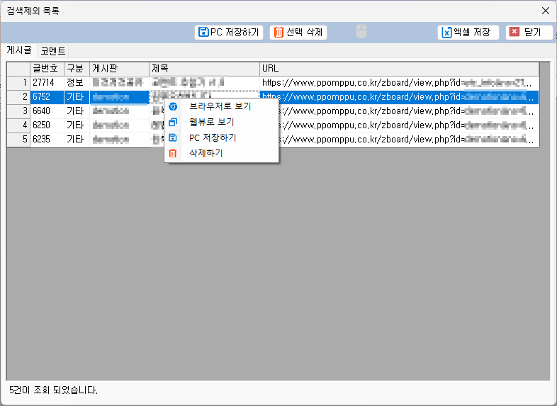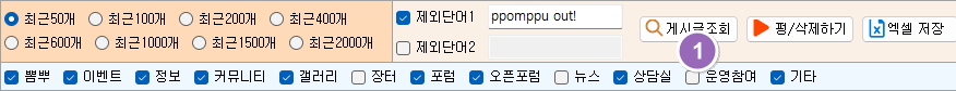 1. 선택삭제 - 목록에서 선택삭제를 하게 되면, 검색제외 항목에서 삭제가 되고, 다음 번 게시글 조회시에 나타난다.