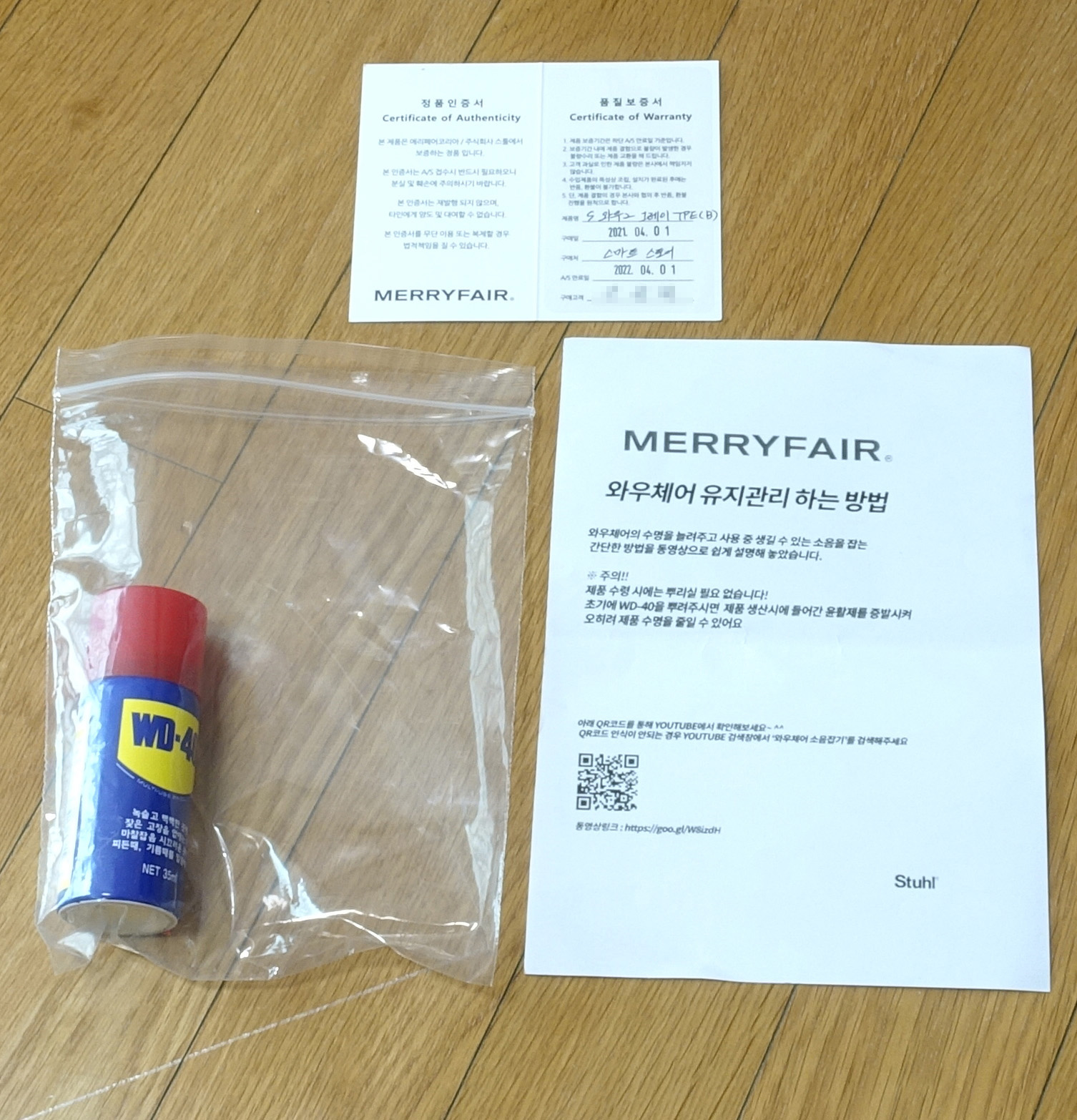 제품에는 방청윤활제인 WD-40 (미니) 도 포함되어 있다.