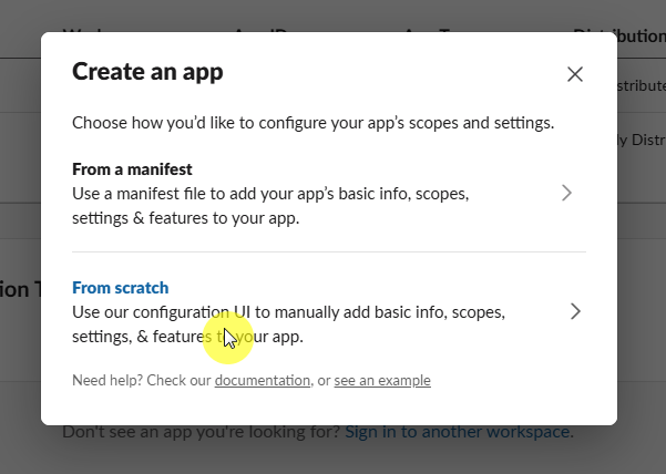 아래에는 메세지를 전송할 Workspace 를 선택한다.
