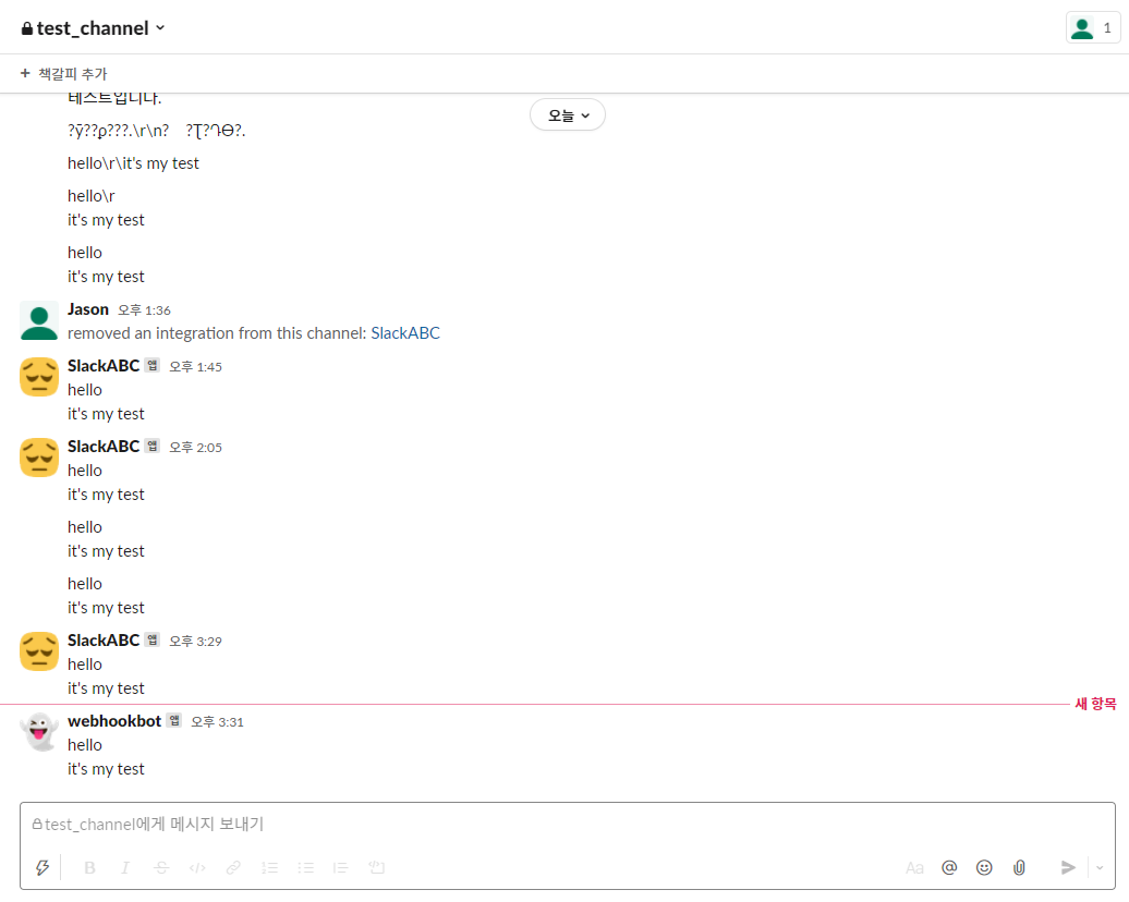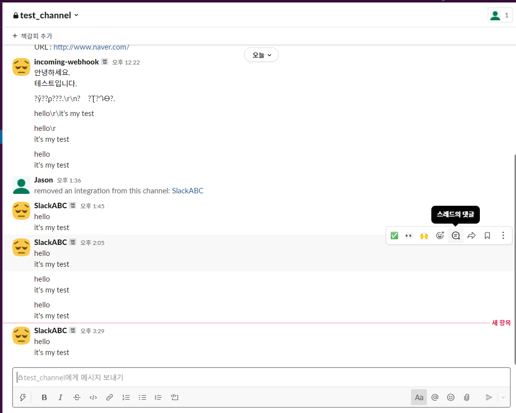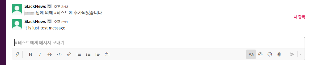 슬랙에서는 위와같이 메세지가 오게 된다.