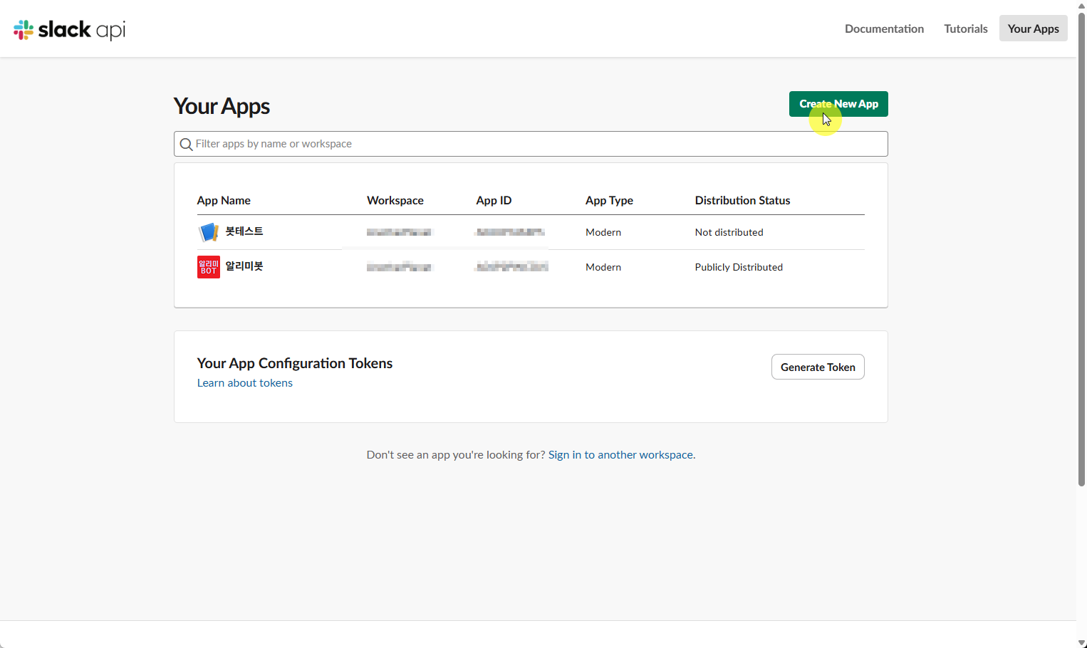 여기까지 작업을 하면, 이제 해당 Workspace 에 메세지를 보낼 수 있는 봇이 생성이 된것이다.