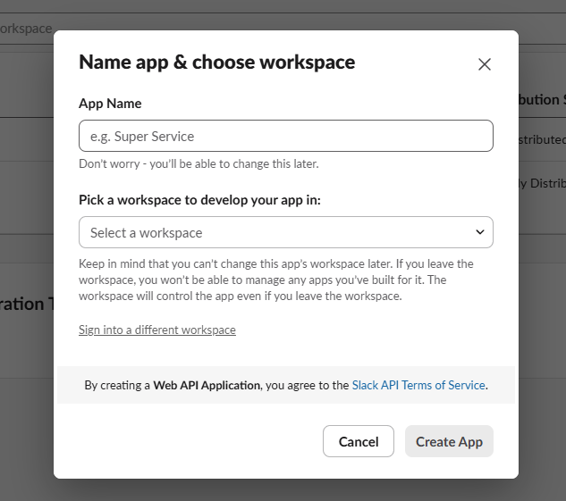 App Name 에 봇의 이름을 적어준다.