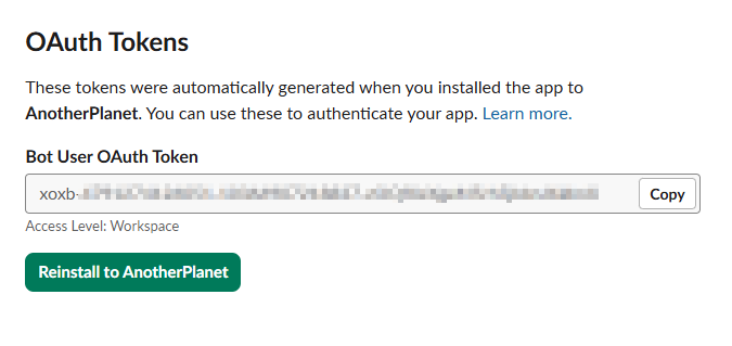 생성된 OAuth Token 을 복사해서 저장해준다.