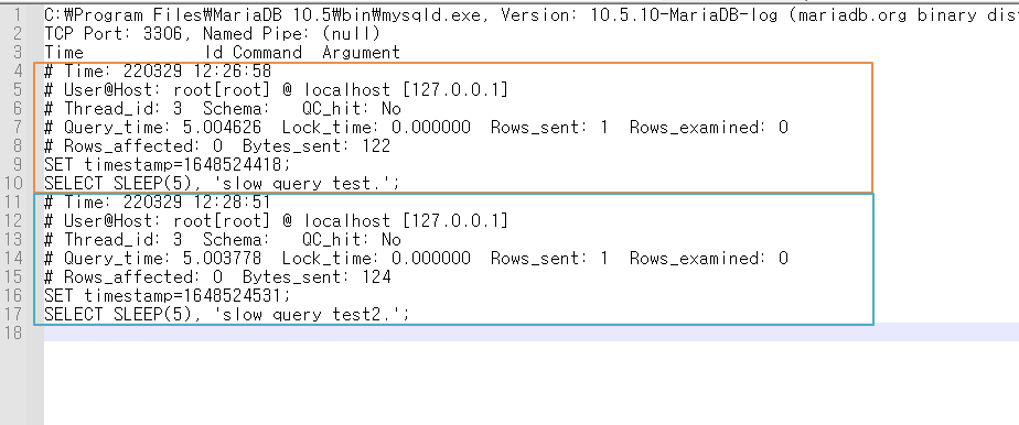 슬로우쿼리가 탐지될때마다, 로그 파일의 뒤에 계속 추가가 된다.