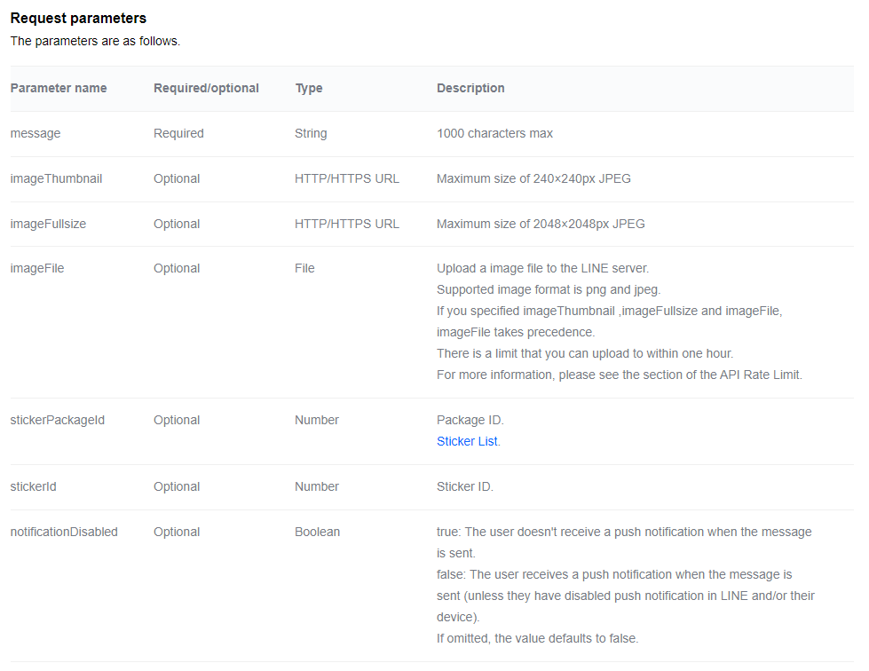 | POST 로 https://notify-api.line.me/api/notify 를 호출하면 되고, 인증은 Bearer 에 위에서 생상한 token 을 넣어주면 되고, 메세지는 form data 로 message=test_message |