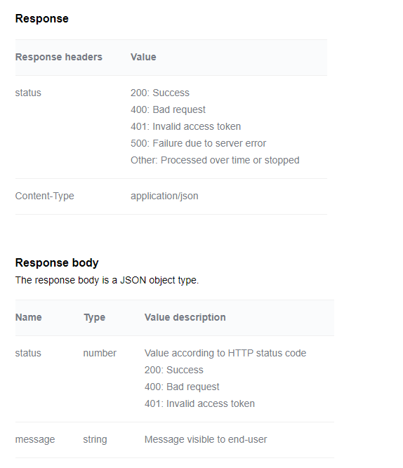 API 메서드가 여러개가 있는데, 이중에 메세지 전송하는 API 만 보면 아래와 같다.
