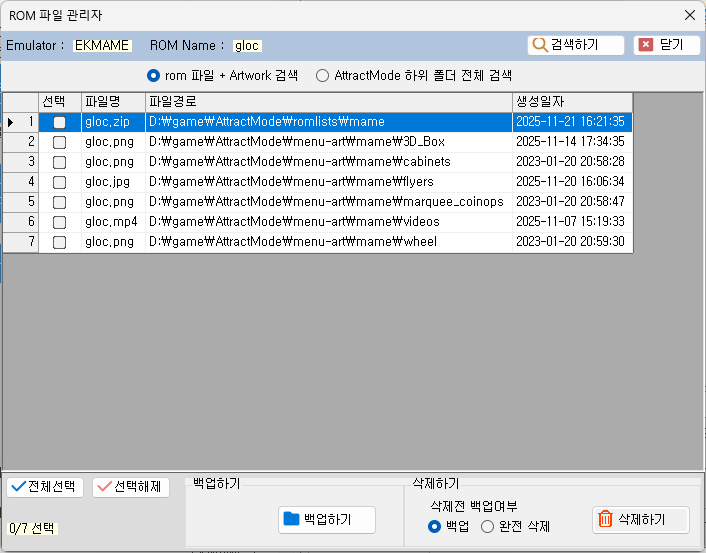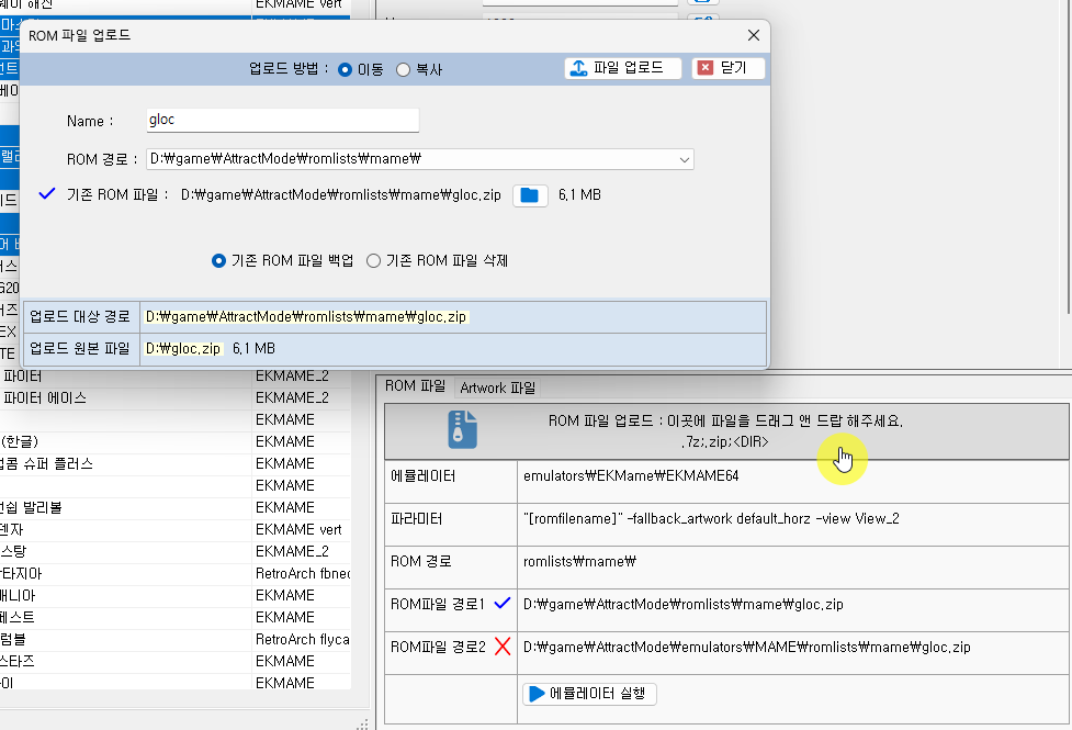 ROM 과 관련된 롬파일, 아트웍파일, 그외에 save 파일 기타 등등의 파일들을 확인하고,