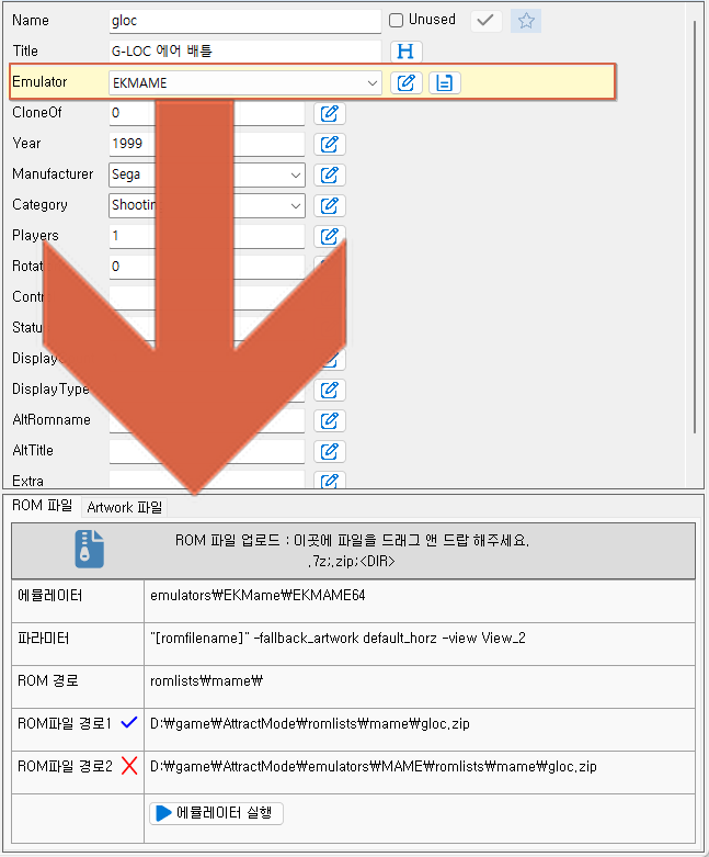 에뮬레이터 별로 ROM 파일 설정이 다르기에, Emulator 를 선택한 값에 따라,