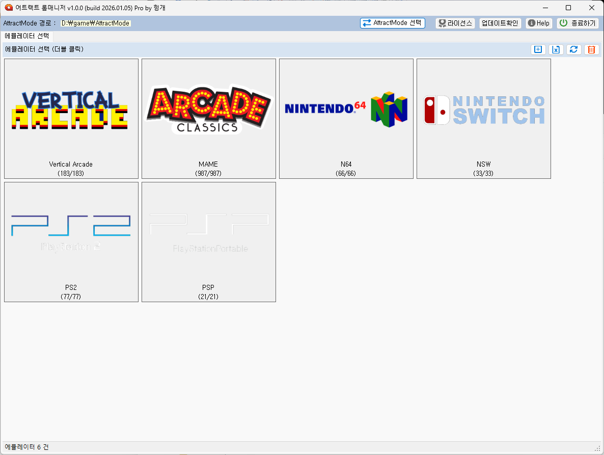 AttractMode 가 있는 홈 경로를 설정하고, [AttractMode 연결하기] 를 누르면,