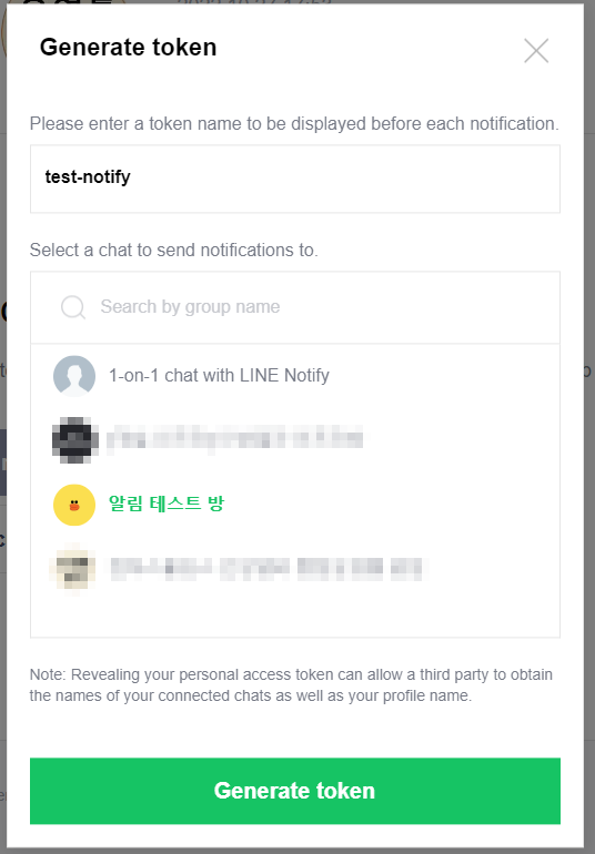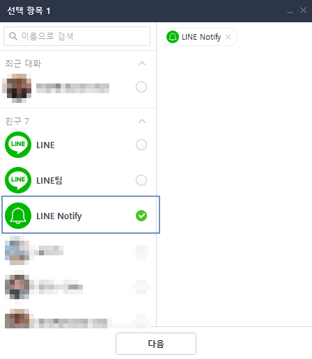 LINE Notify 가 친구에 안나온다면, 친구추가를 먼저 하고 진행해야 한다.