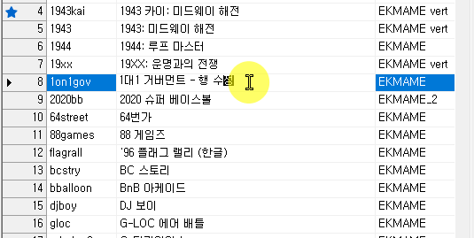 왼쪽에는 romlists 파일에 등록된 모든 롬 목록이 나타나며,