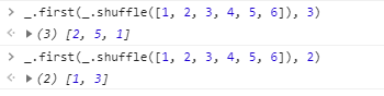 sample 는 첫번째 인자의 array / json object 중에서, 두번째 인자의 갯수만큼 랜덤하게 샘플링을 하는 함수이다.