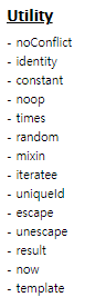 Collections / Arrays / Functions / Objects / Utility 로 구분되어 있고,