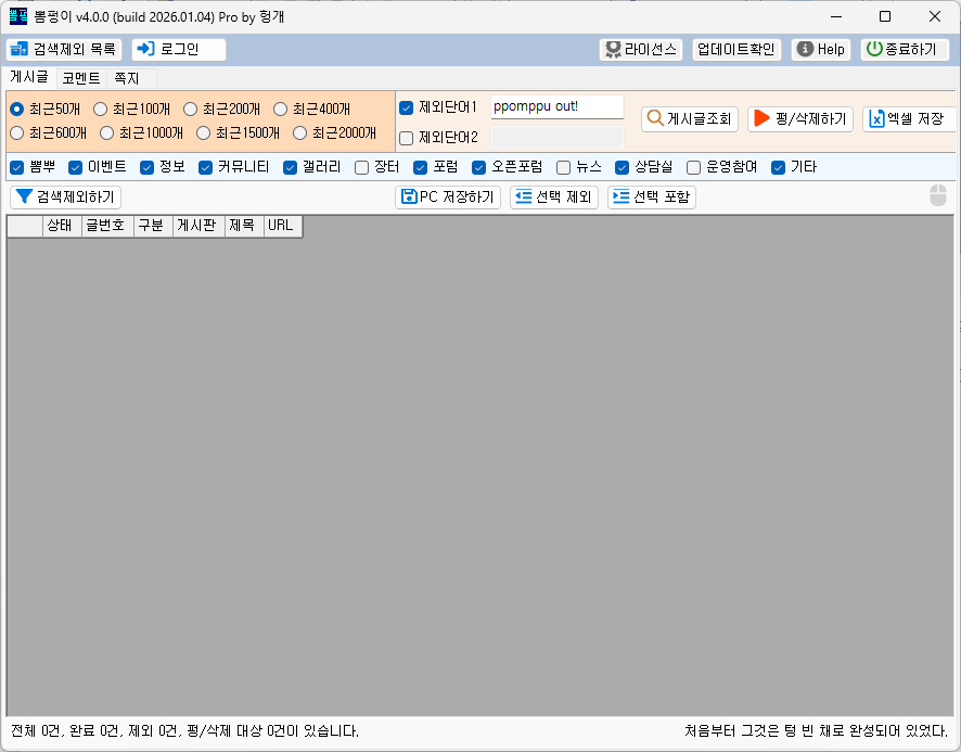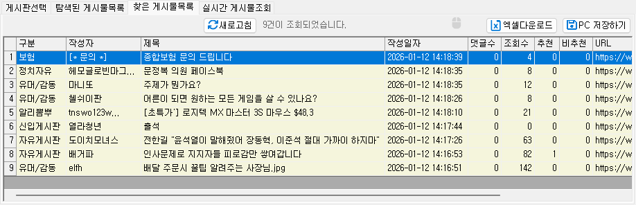 (탐색 조건에 맞아도 첫번째 글들은 제외입니다, 즉 프로그램을 탐색 작업을 시작하기 전에 이미 작성된 글은 제외합니다.)