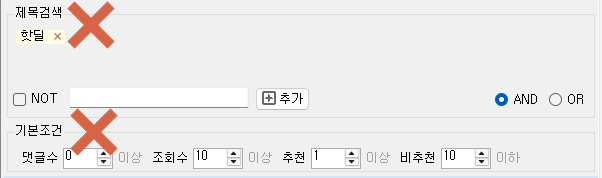 주의할 점은, 댓글수, 조회수, 추천수는 입력한 숫자 이상이지만, 비추천은 입력한 숫자 이하의 글을 찾게 됩니다.